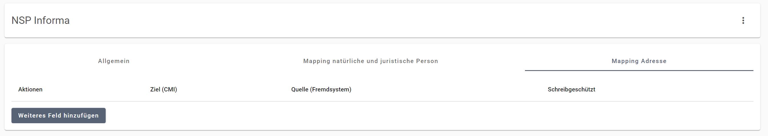 Die Einstellungen für NSP Infoma sind im Config-UI (Config-UI) unter NSP Infoma zu finden.